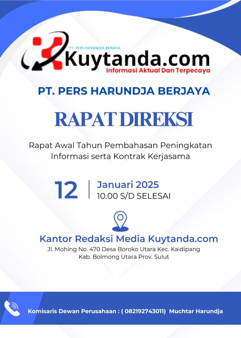 Kuytanda.com | Nasional-Pelaksanaan rapat koordinasi Wartawan Kuytanda.com yang di gelar langsung melalui WAG/Via Zoom pukul, 10.00. WIT-selesai dini hari Minggu, (12/01/25).